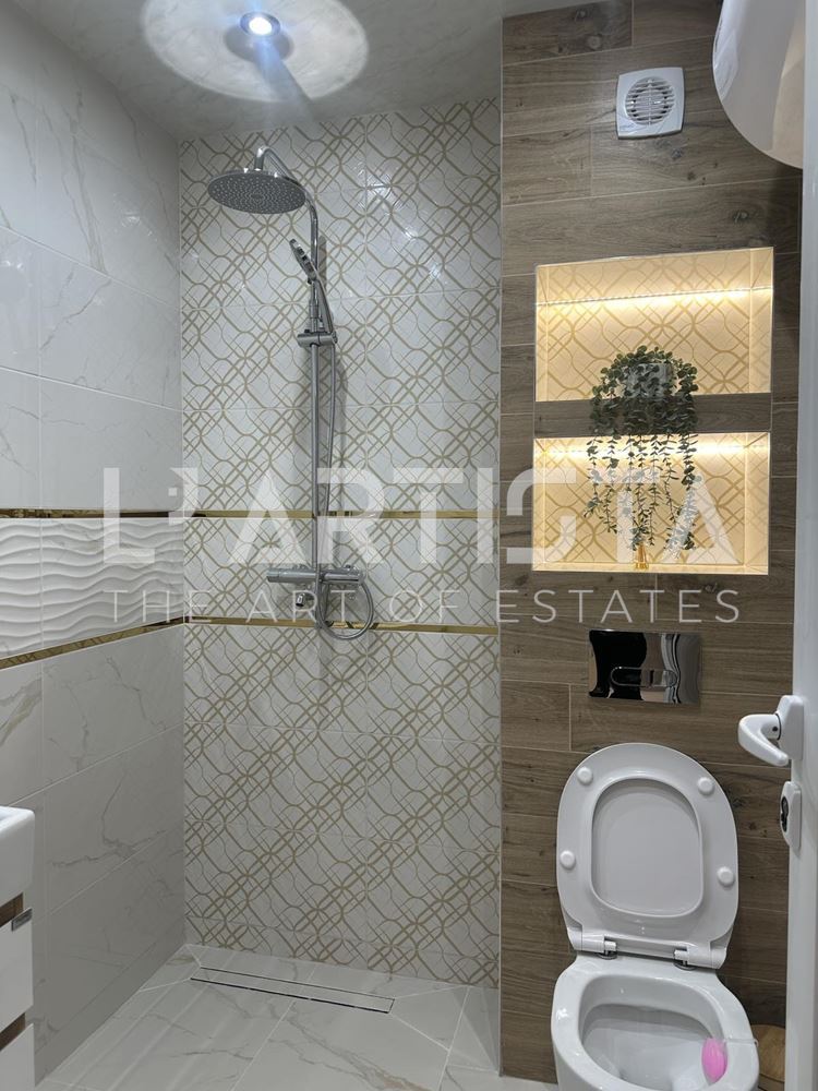The apartment has an area of 64 square meters; it is brand new, has never been used, and features high-quality materials and furnishings with attention to detail. It is equipped with all necessary appliances—a washing machine, dishwasher, refrigerator, and Mitsubishi air conditioners. Heating is provided by the air conditioners.