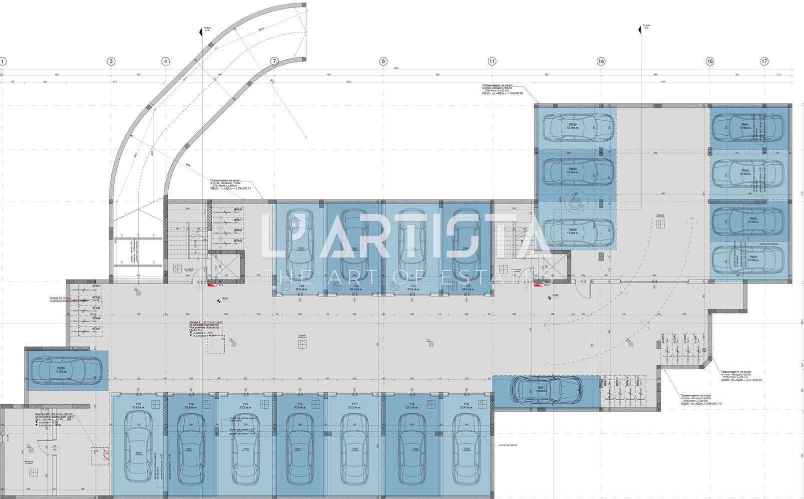 Underground parking space No. 34 with a built-up area of 12.50 sq.m. (28.90 sq.m. with common areas).