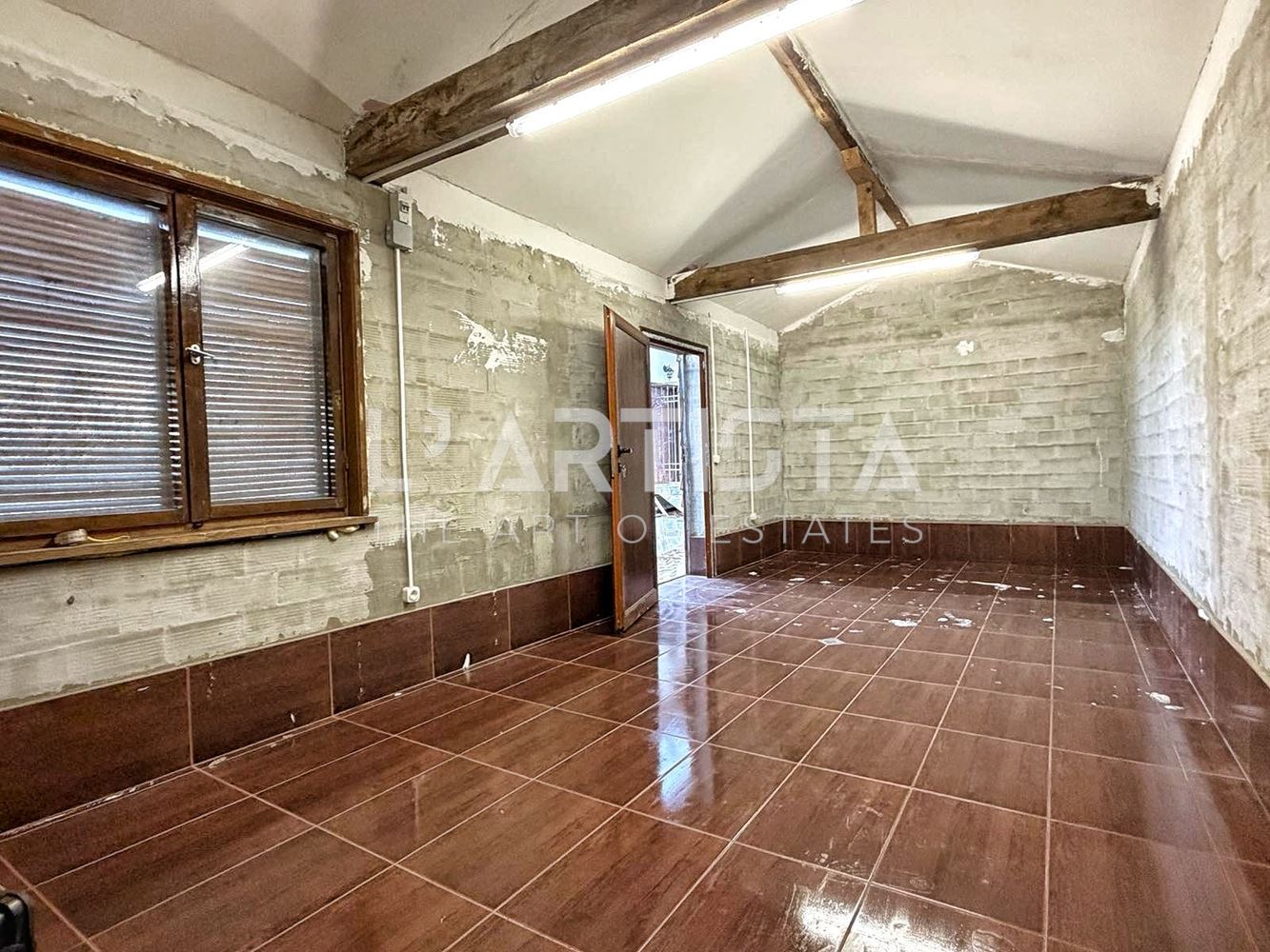 The property is a two-story house with a large 60 sq. m. tavern on the first floor with a kitchenette and bathroom. On the second floor, there are two bedrooms, one of which has a large 7-8 sq. m. terrace, a bathroom with a toilet, and an attic space suitable for use.