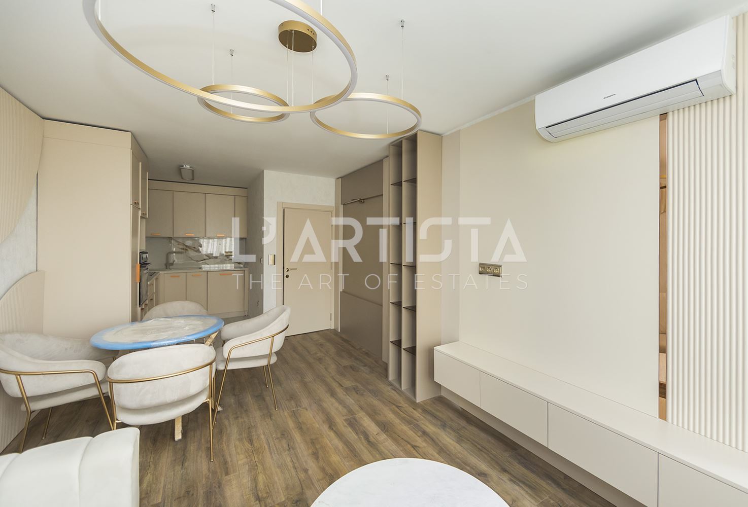 Апартаментът е перфектен за млада двойка или малко семейство, предоставяйки уют и комфорт. Изключително функционалното разпределение ще ви позволи да се наслаждавате на зоните за отдих и почивка.