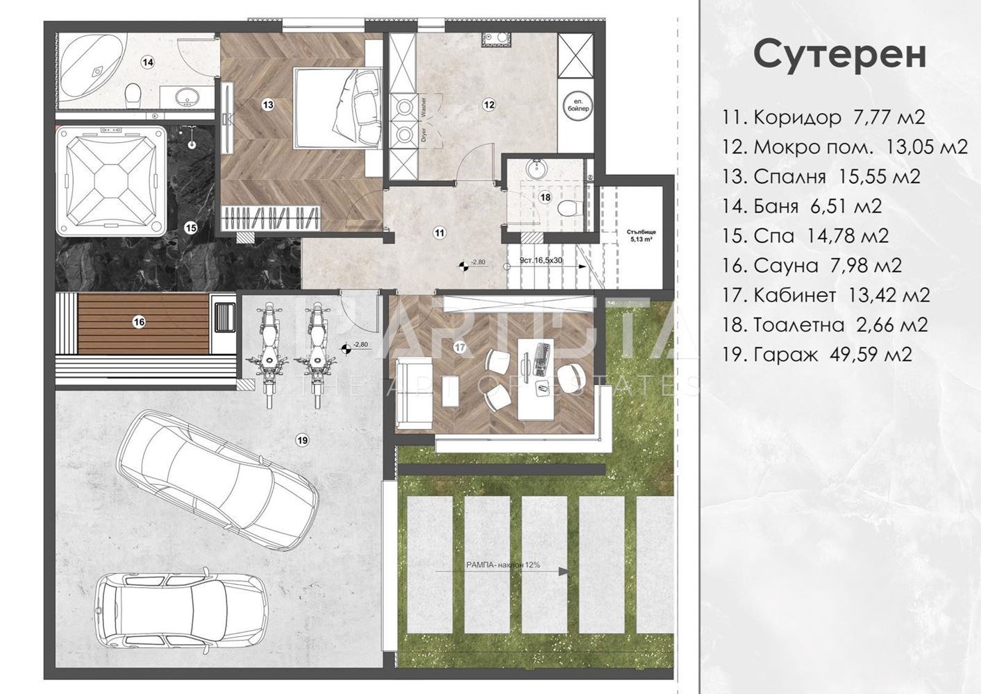 В цената е ВКЛЮЧЕНО ПОДОВО ОТОПЛЕНИЕ И ТЕРМОПОМПА на целия имот включително на гаража.