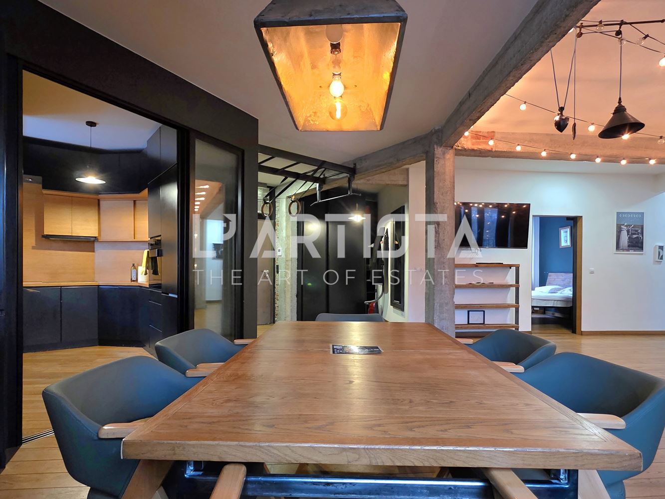 Вечер имотът се трансформира благодарение на прецизно планирано приглушено осветление, което подчертава уютната атмосфера.