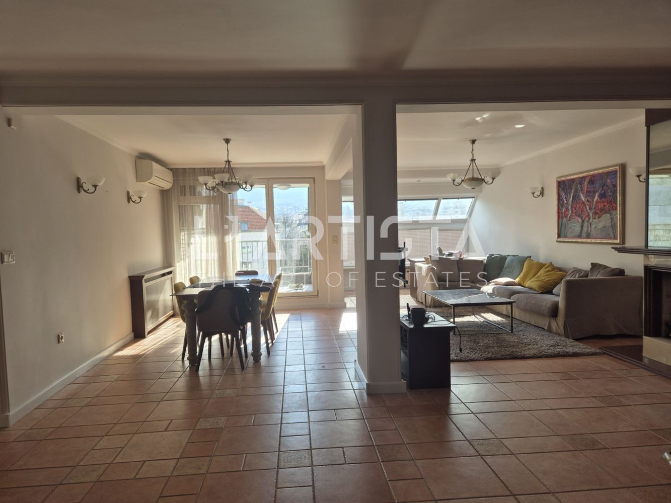 От дневната и спалните се излиза на южна тераса с невероятна гледка към Витоша.
