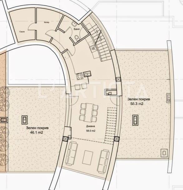 Лартиста Ви представя просторен мезонет на последните два етажа в сграда от висок клас с Акт 16.