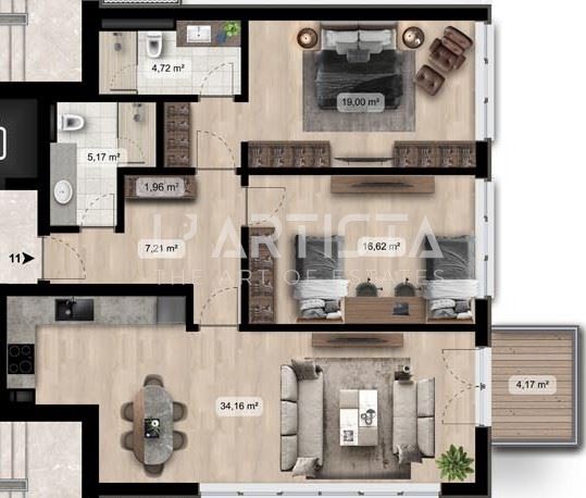 2.Жилищните сгради: Разполагат със 122 апартамента, разпределени в 2 жилищни кули: